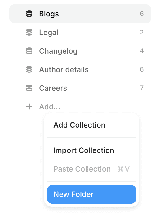 Previously, all your collections sat in one flat list. Now you can group them into folders - blog posts, team members, portfolio projects, products - each in their own place. It's a small change but makes a meaningful difference when you're managing a site with multiple content types in Framer.