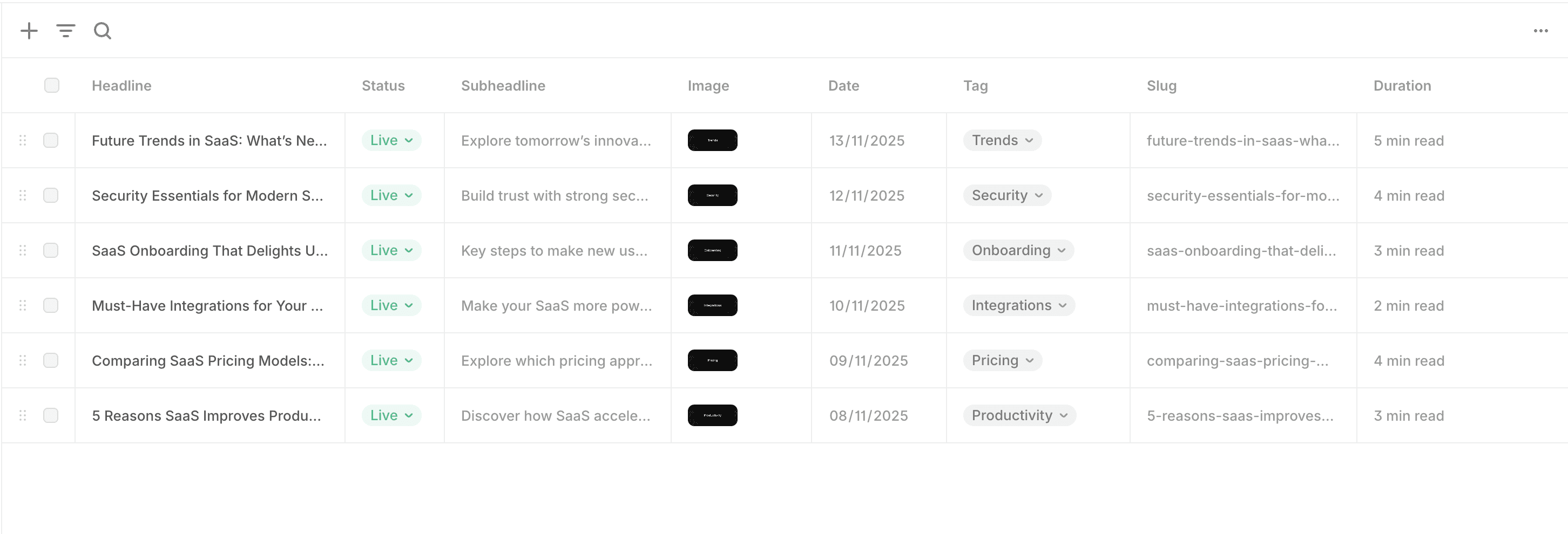 The new table view lets you edit content inline, without opening overlays for every item
